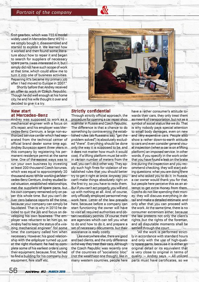 “The first time” – that’s a good phrase to use in reference to any article of the first issue of the year! And we’ve made good use of it. It’s the first time “AutoTransTech” has held a seminar in the Czech Republic. And that is why the hero of our column today (for the first time!) is a company created by Russians in Europe – Andrey Suvyazov tells us about his car service centre in Prague.