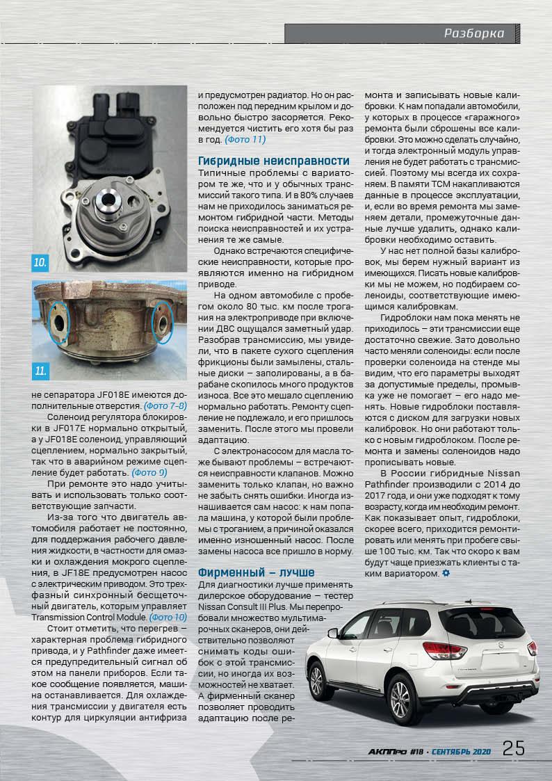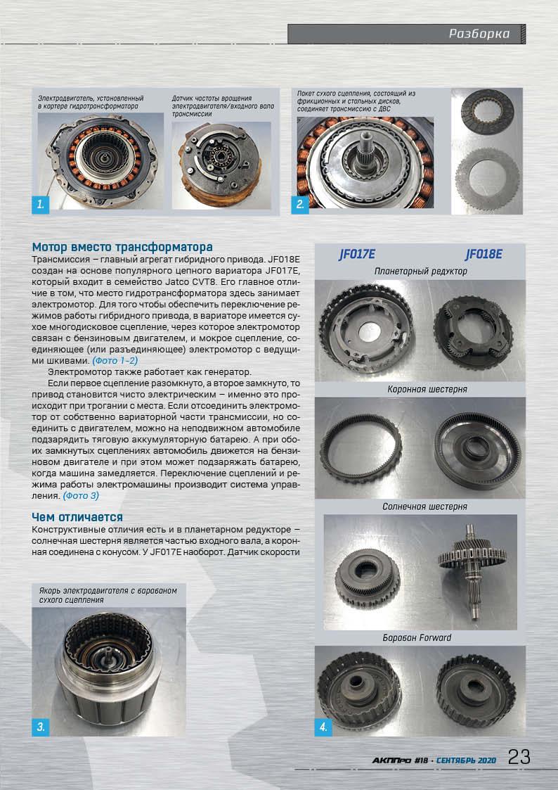 The transmission of Nissan and Infifniti hybrid modifications - the Jatco JF018E CVT is created on the basis of the popular JF017E model, but has several significant design differences.