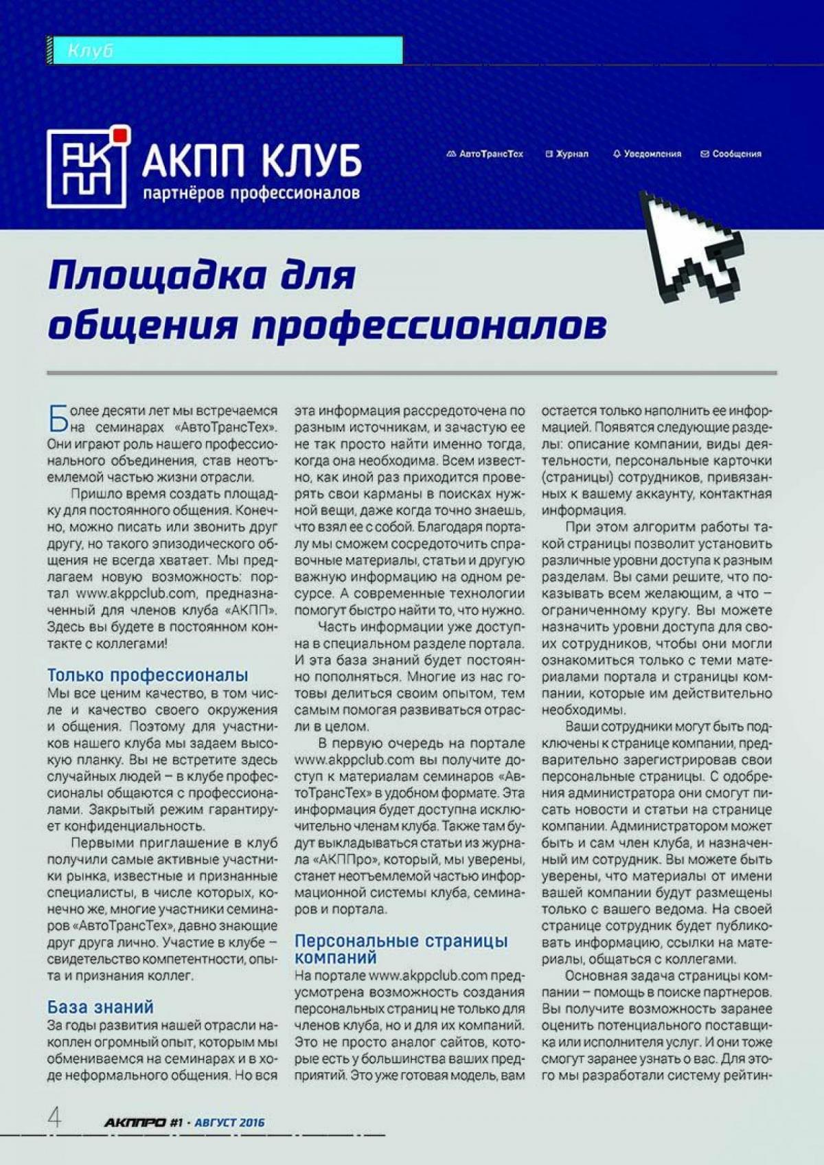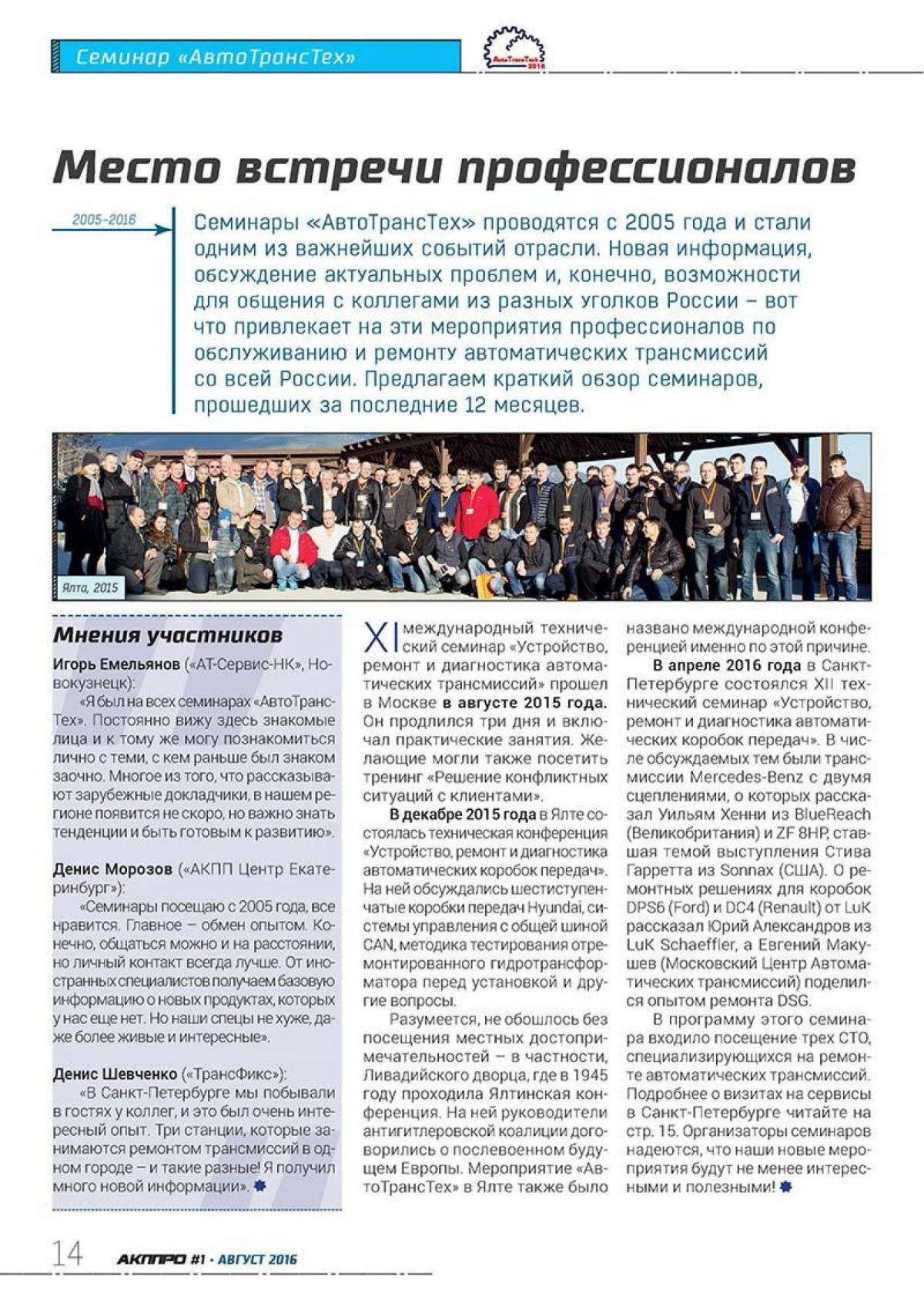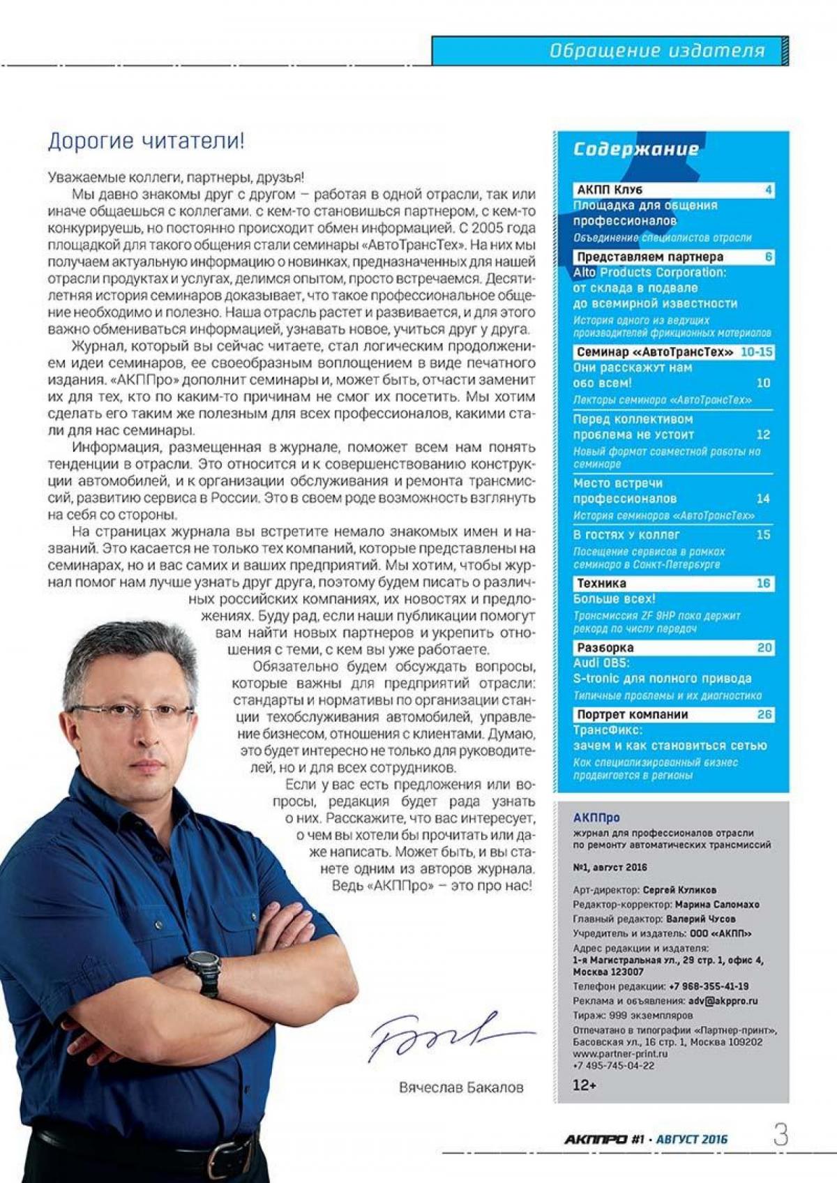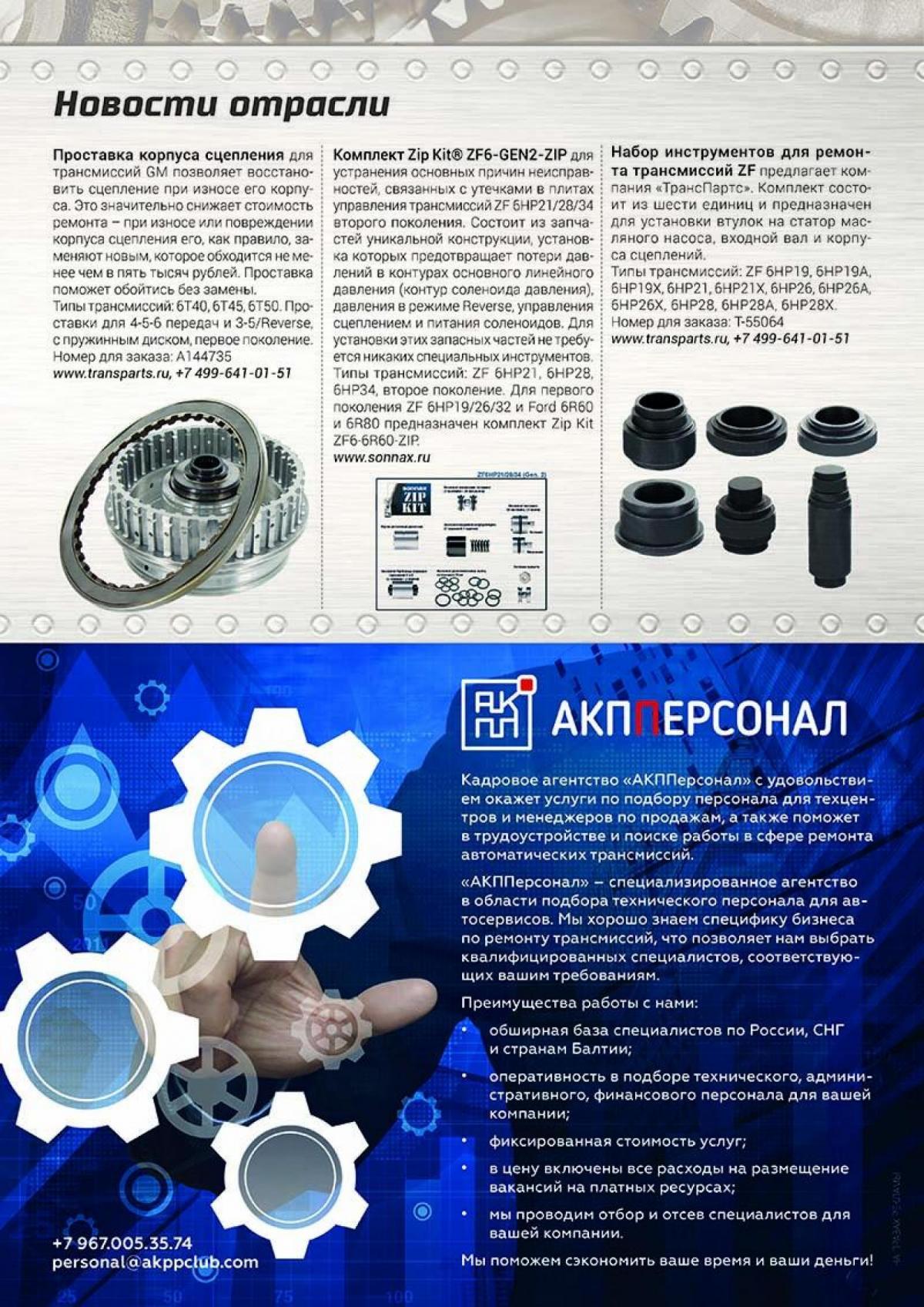 Информация, размещенная в журнале, поможет всем нам понять тенденции в отрасли. Это относится и к совершенствованию конструкции автомобилей, и к организации обслуживания и ремонта трансмиссий, развитию сервиса в России. Это в своем роде возможность взглянуть на себя со стороны.