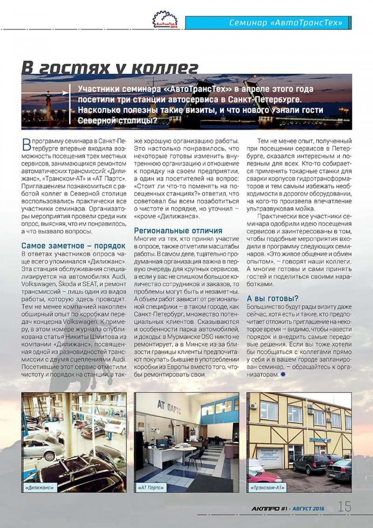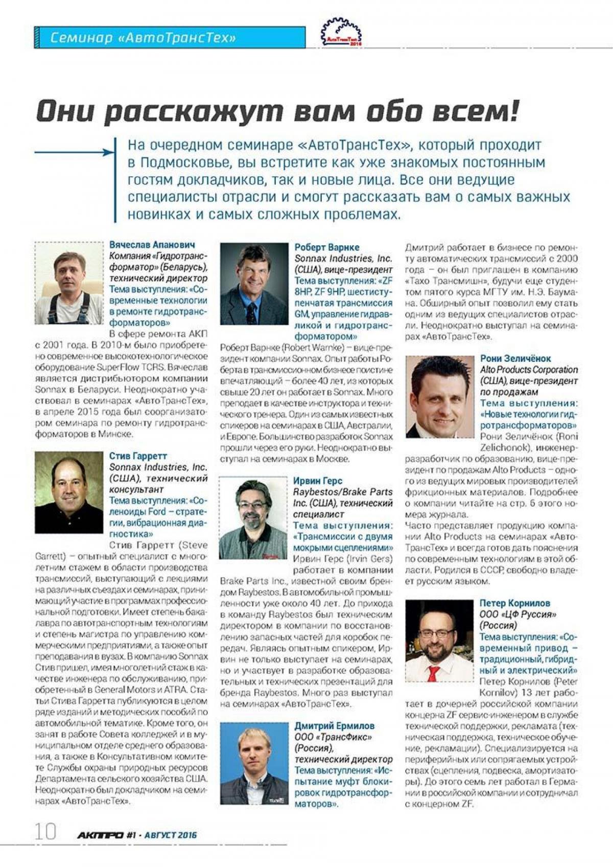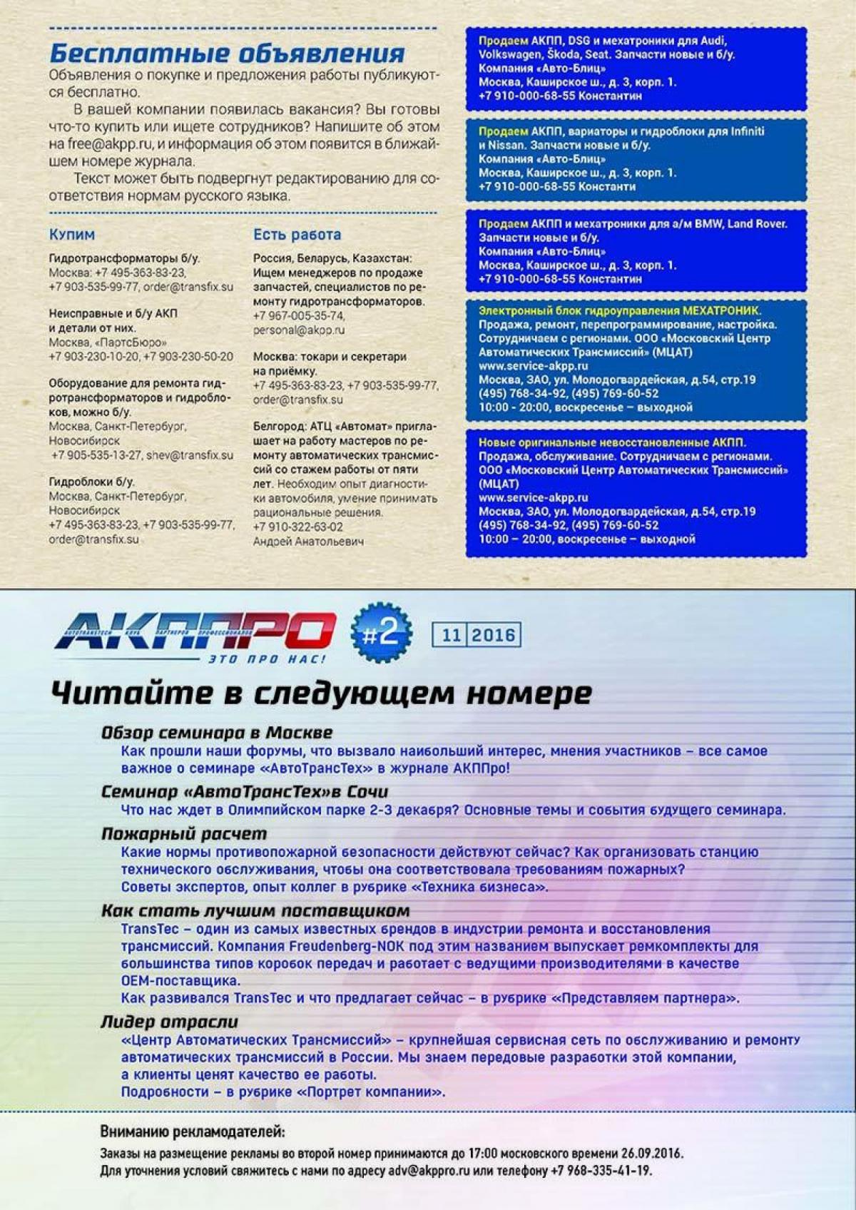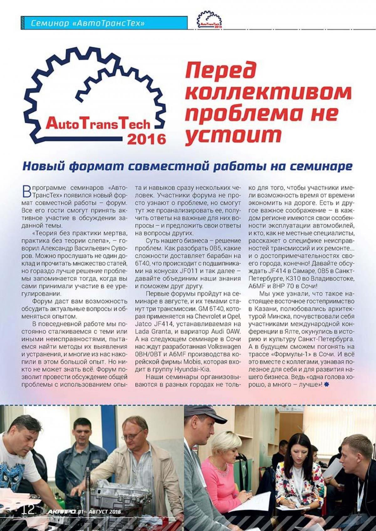 Информация, размещенная в журнале, поможет всем нам понять тенденции в отрасли. Это относится и к совершенствованию конструкции автомобилей, и к организации обслуживания и ремонта трансмиссий, развитию сервиса в России. Это в своем роде возможность взглянуть на себя со стороны.