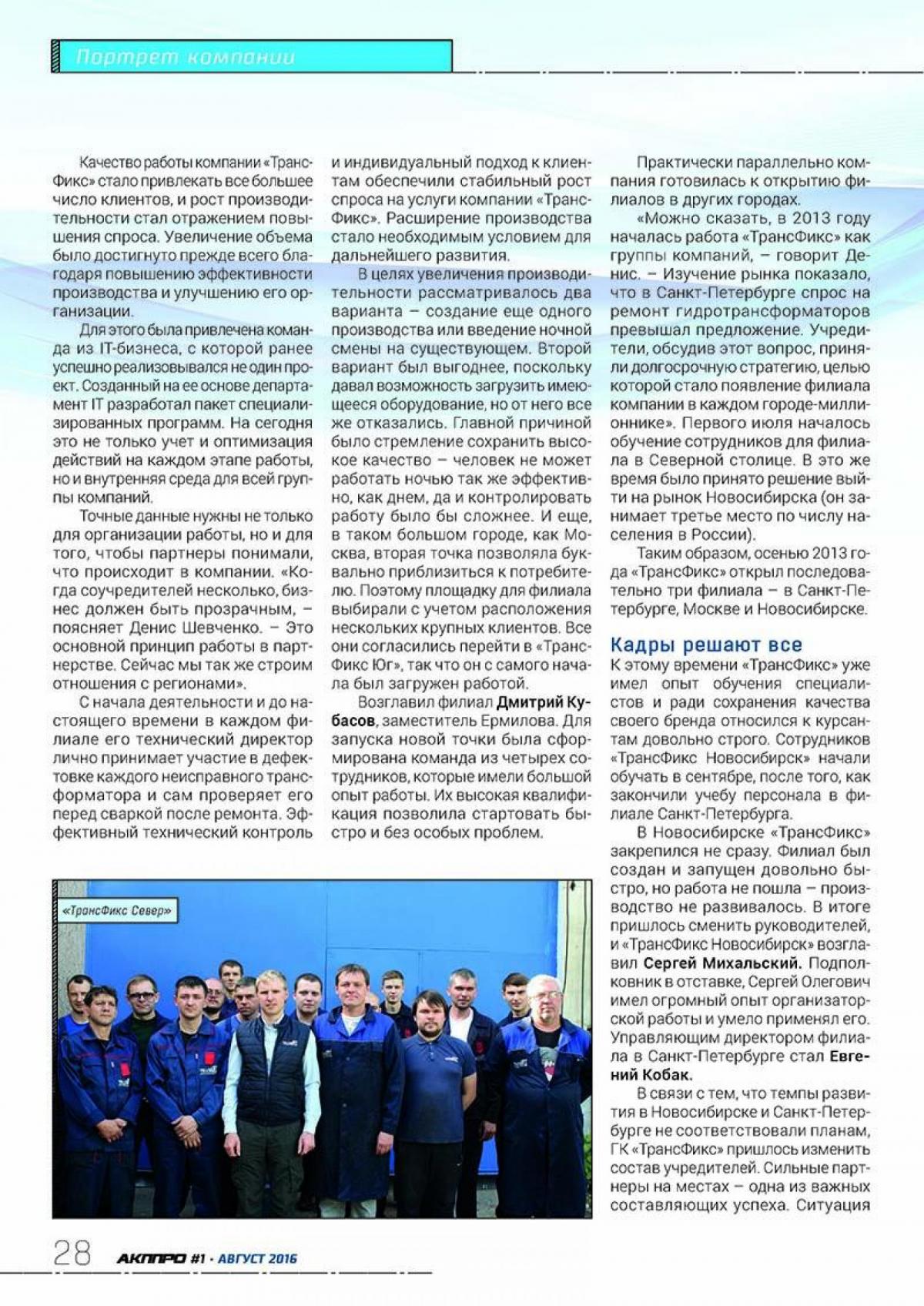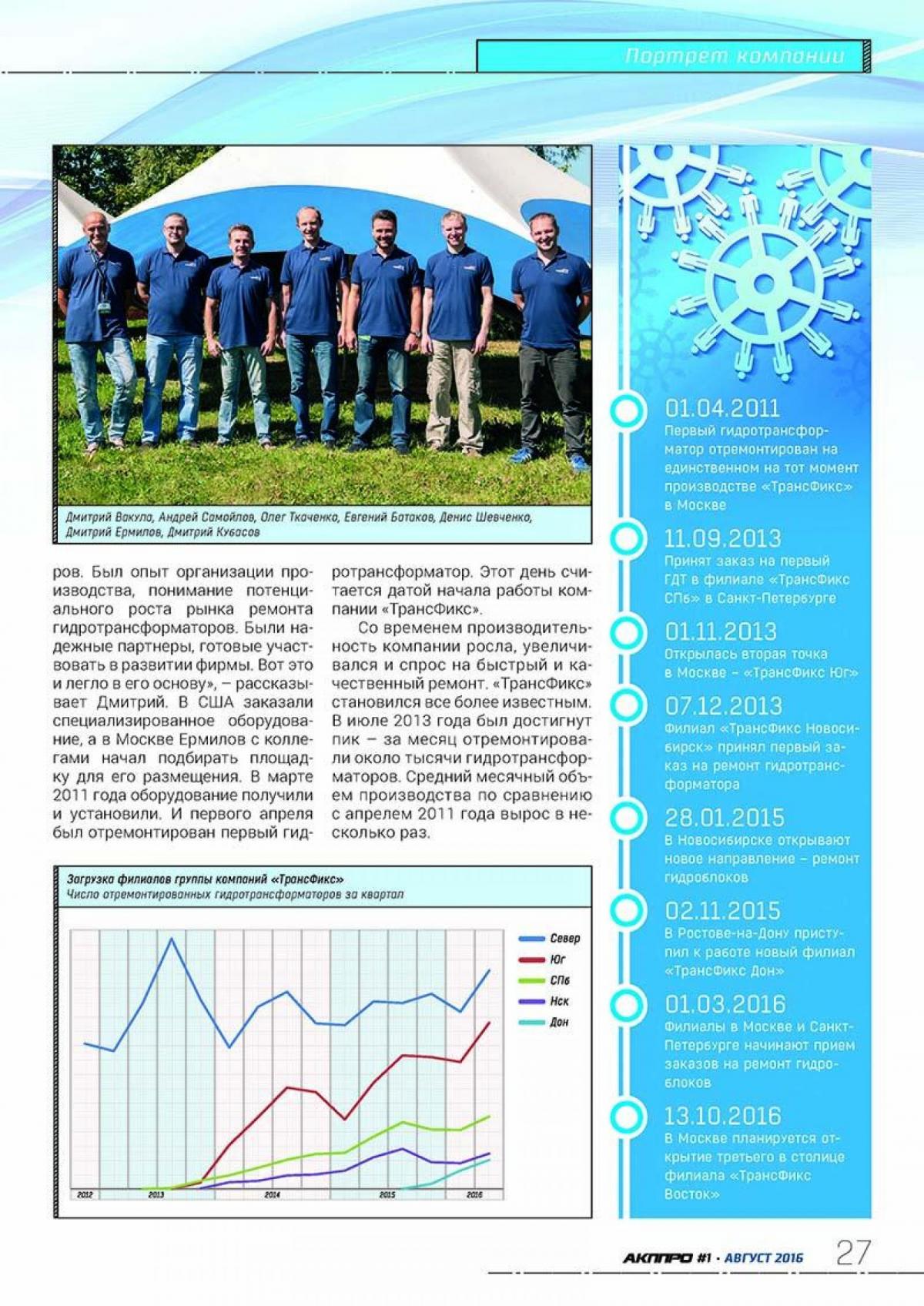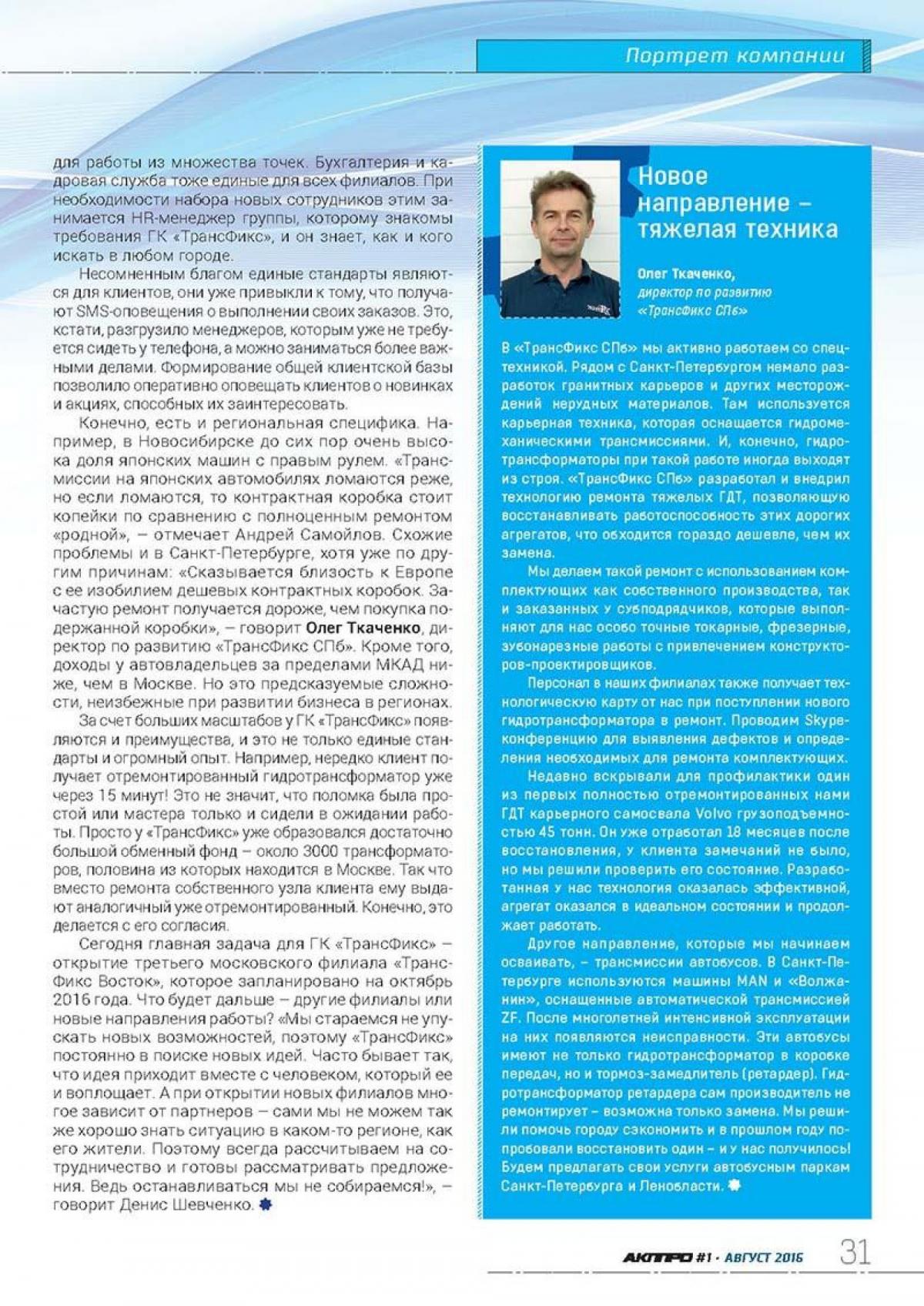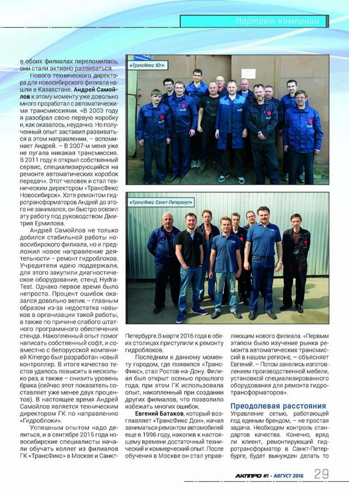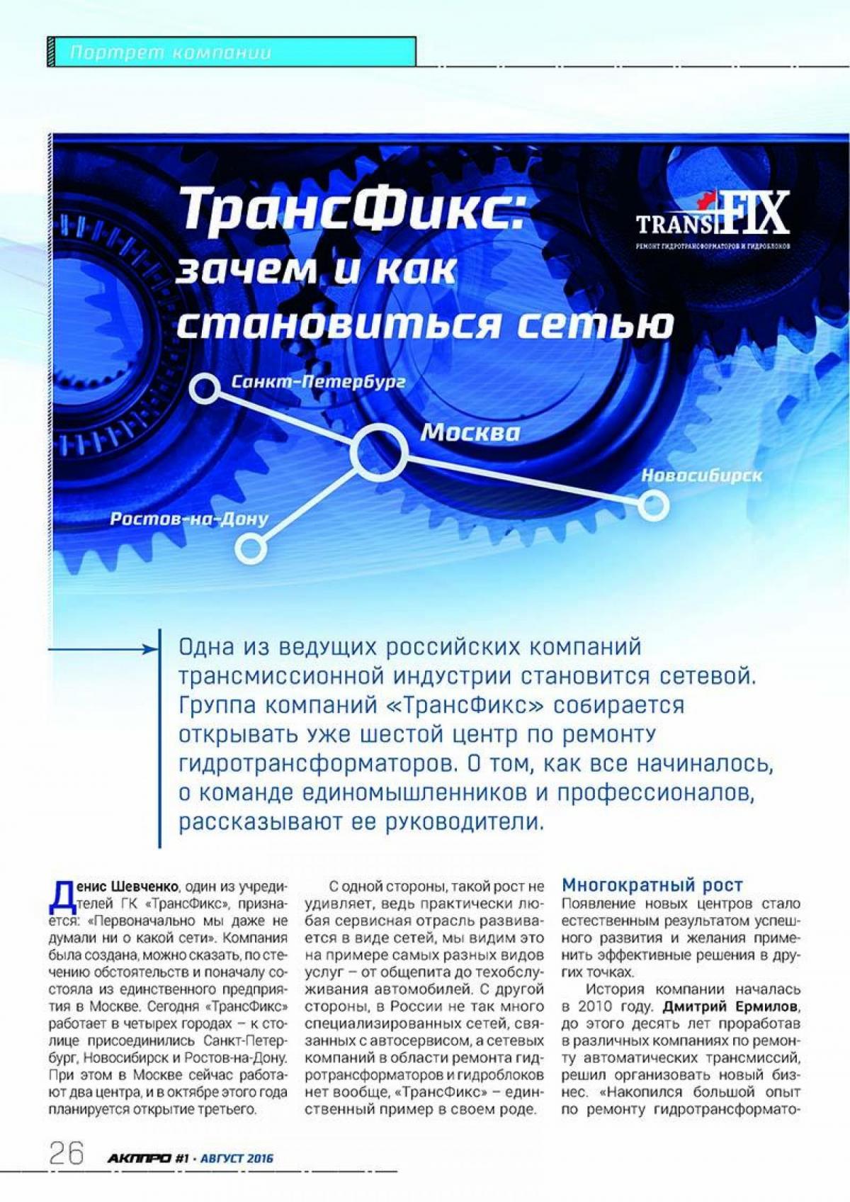 стр. 20 РазборкаОдна из ведущих российских компаний трансмиссионной индустрии становится сетевой. Группа компаний «ТрансФикс» собирается открывать уже шестой центр по ремонту гидротрансформаторов. О том, как все начиналось, о команде единомышленников и профессионалов, рассказывают ее руководители.