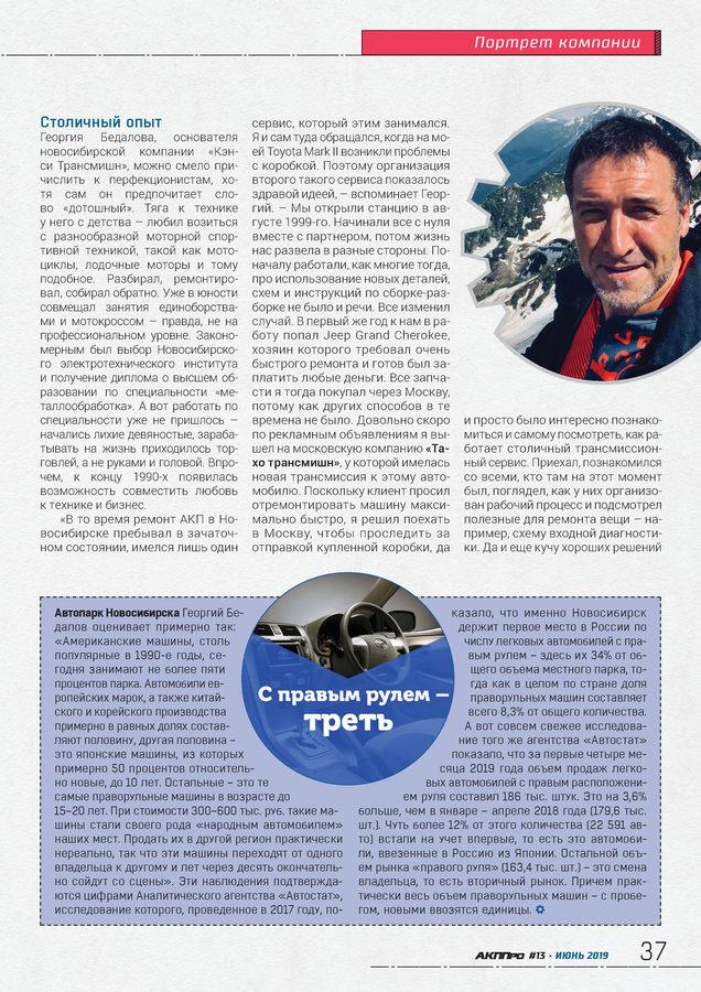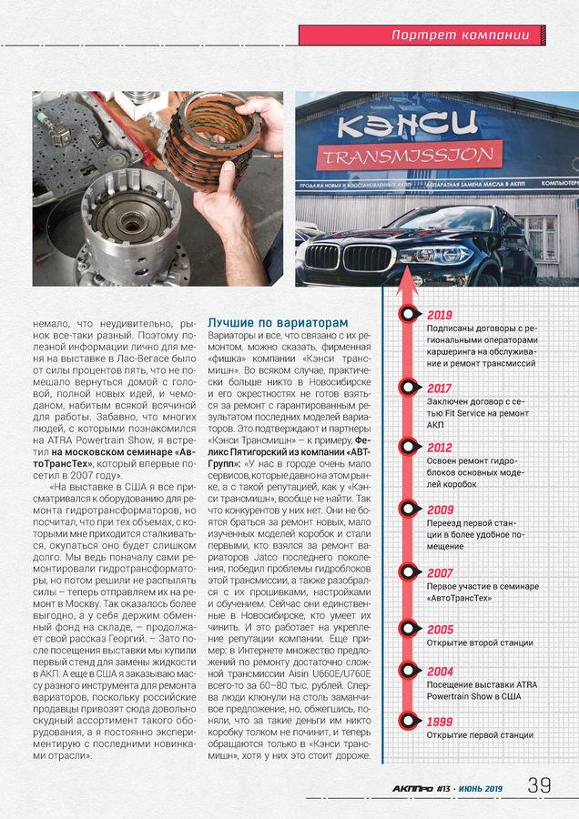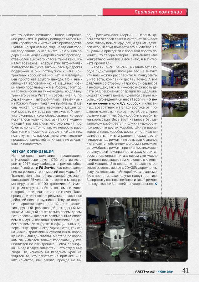 стр. 32 РазборкаВ августе этого года «Кэнси» отметит свое 20-летие. За прошедшее время компания стала одним из лидеров в области ремонта автоматических трансмиссий в Новосибирске. Добиться этого помогло стремление Георгия Бедалова к наивысшему качеству работы.