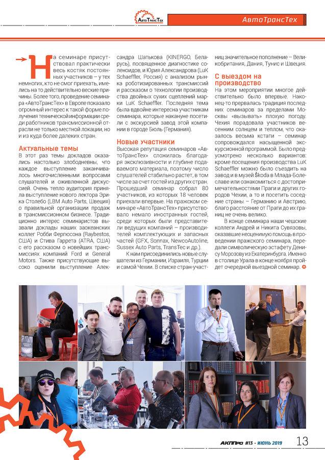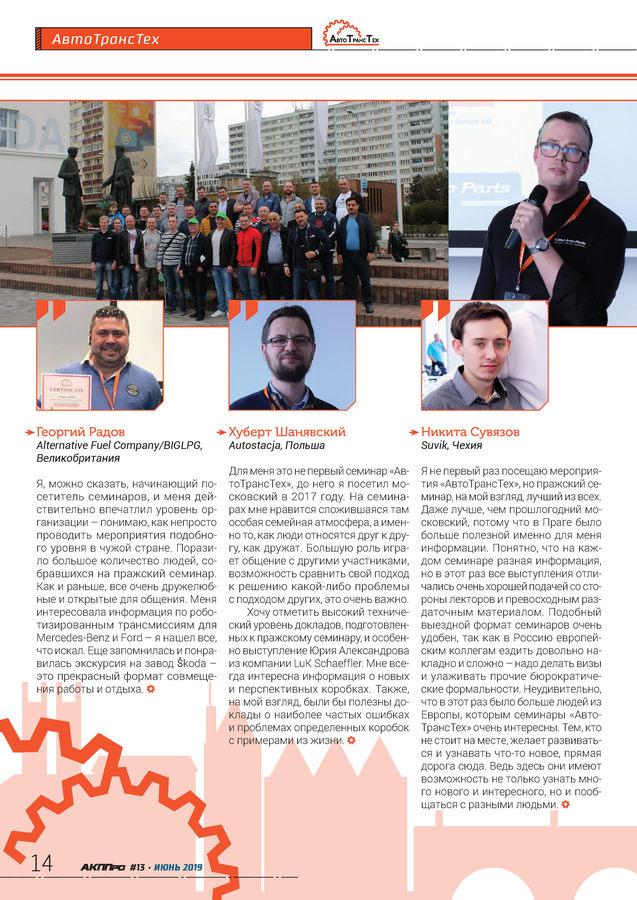 стр. 10 Технология«АвтоТрансТех» открыл сезон мероприятий в 2019 году в самом центре Европы. Технический семинар, проходивший 4–5 апреля в столице Чехии Праге, продемонстрировал, что для получения новых знаний границ и расстояний не существует.