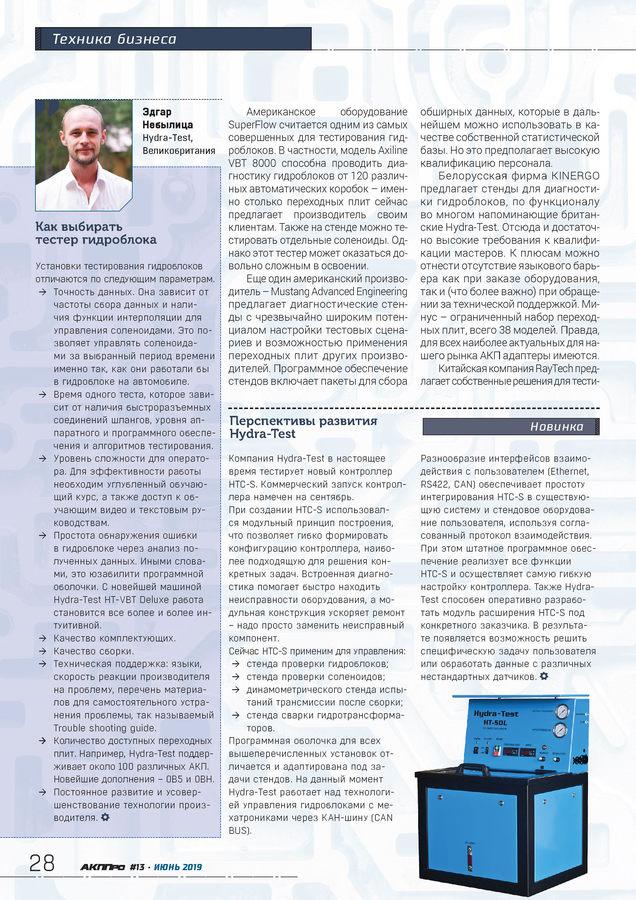 В рубрике «Техника бизнеса» в этом номере – обзор тестеров гидроблоков. Мы поговорили и с производителями, и с теми, кто уже использует тестеры разных компаний. Может, и вы захотите высказать свое мнение? Будем рады вашим комментариям!