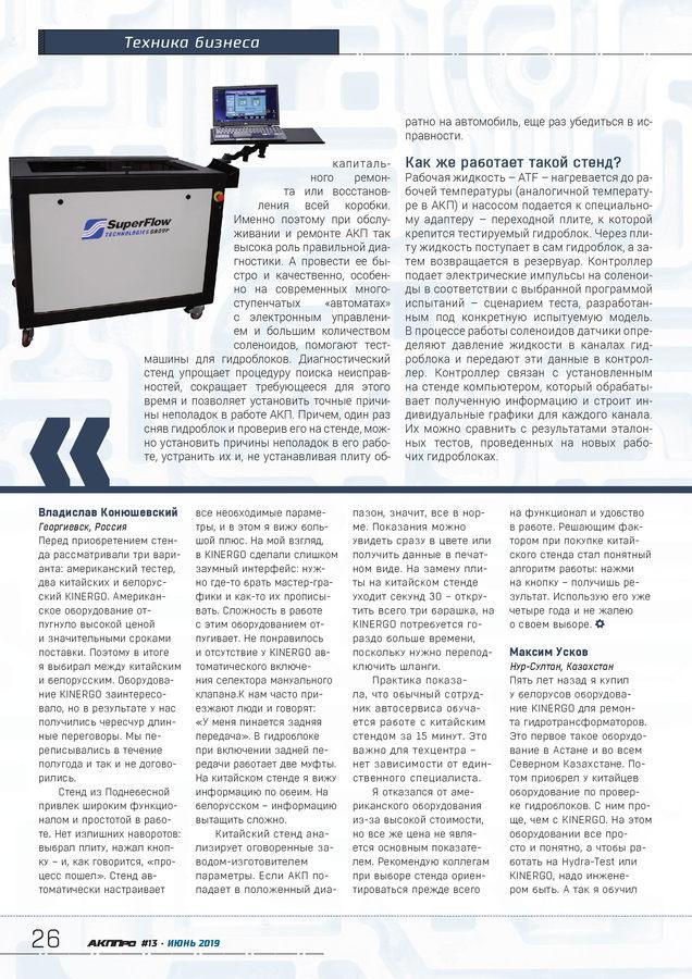 стр. 20 Представляем партнераОдин из главных объектов для инвестиций при организации участка по ремонту автоматических трансмиссий – тестер гидроблоков. На рынке разновидностей таких диагностических стендов не так уж много, но разница между ними есть. Как правильно их выбирать?