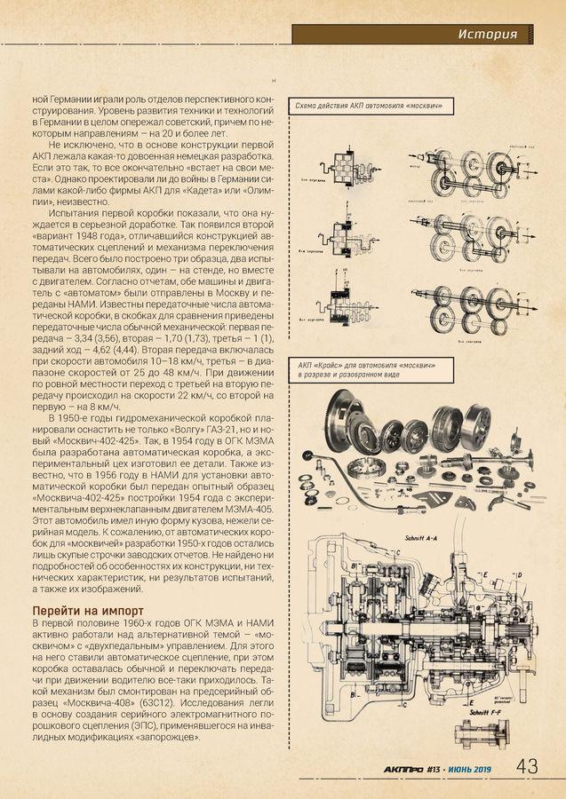 стр. 36 Портрет компанииГидромеханические автоматические трансмиссии в СССР выпускались серийно, но только для тяжелой техники и представительских автомобилей. Конструкторские бюро разных предприятий работали и над «автоматом» для более массовых легковых моделей, однако в серийное производство они не попали.