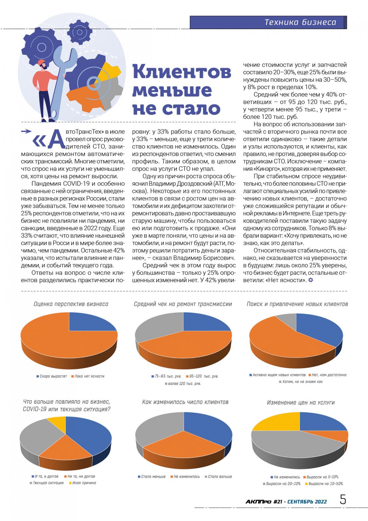 Перед выпуском этого номера «АКППро» мы решили узнать, как сильно изменения в экономике сказались на наших читателях и участниках семинара «АвтоТрансТех». Оказалось, что ситуация не так уж и ухудшилась, – в среднем количество клиентов не уменьшилось, хотя большинство СТО подняли цены на свои услуги. А значит, «запас прочности» у клиентов еще есть.