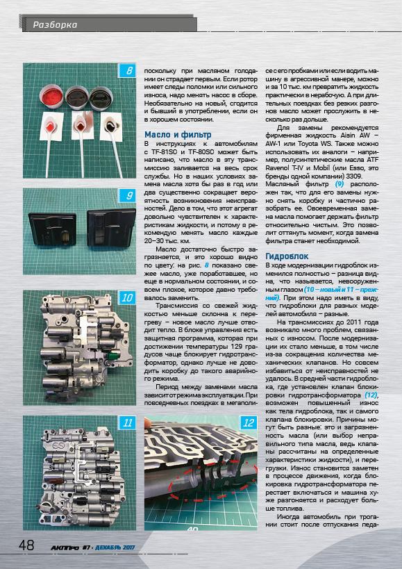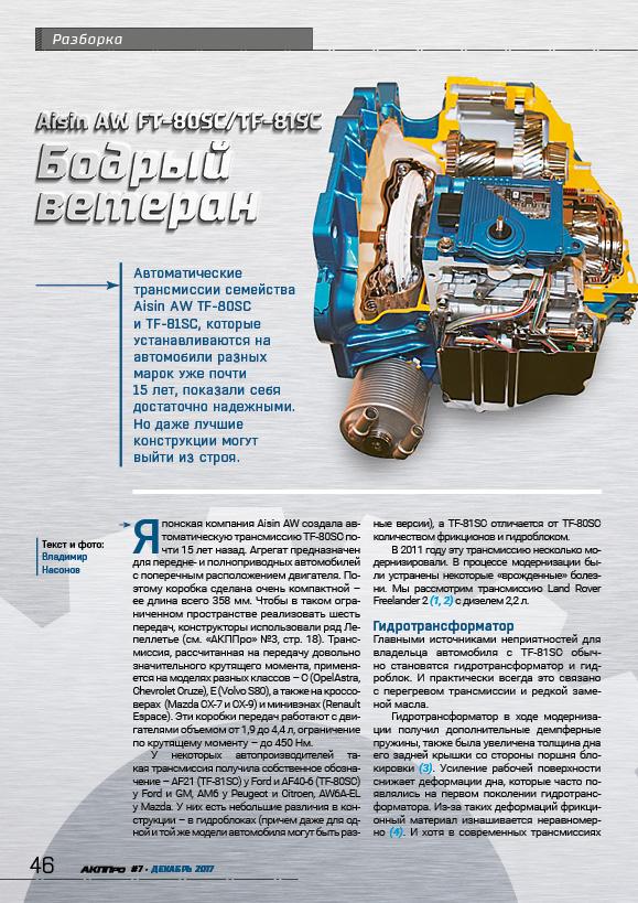 стр. 40 ТехникаАвтоматические трансмиссии семейства Aisin AW TF-80SC и TF-81SC, которые устанавливаются на автомобили разных марок уже почти 15 лет, показали себя достаточно надежными. Но даже лучшие конструкции могут выходить из строя.