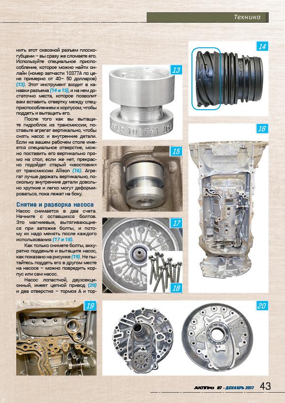 Владимир Насонов делится своим опытом диагностики и ремонта трансмиссий Aisin AW семейства TF-81SC/TF-80SC в нашей традиционной рубрике «Разборка». Стр. 48